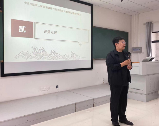株洲扶阳医疗器械有限公司作为本次比赛的独家赞助单位,扶阳罐发明人湖南省针灸学会扶阳外治专业委员会主任委员、株洲扶阳医疗器械有限公司董事长胡木明表示:“作为一家致力于中医养生保健行业的企业,器具研发、技术推广等是公司的生命线,今年是第二届中医药技能比赛,感到十分荣幸能够和学校中医学院合作举办此次比赛;同时,也感到十分欣慰,看到了同学们自信地展现自己的知识与技能,热情洋溢、充满了青春与朝气。相信这次比赛对所有同学,尤其是参赛选手们走好学医之路是意义非凡的。希望同学们再接再励,学业有成,也祝愿学校和学院办学水平更上一层楼。”
