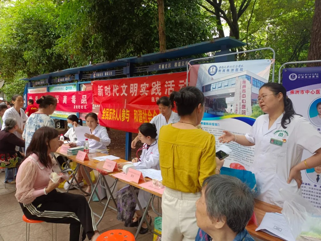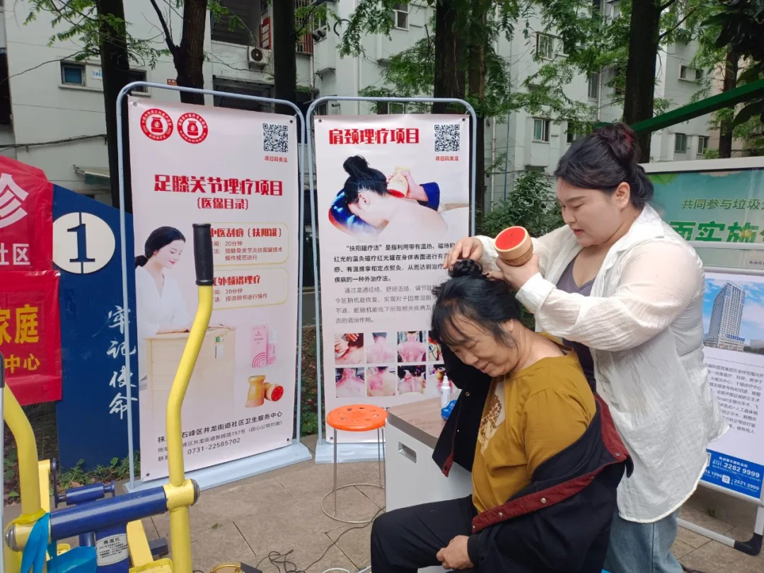 5月23号,株洲井龙街道社区卫生服务中心联合株洲中心医院专家和扶阳罐疗法技术团队来到云杉小区老年活动坪开展“端午安康 健康同行”活动。