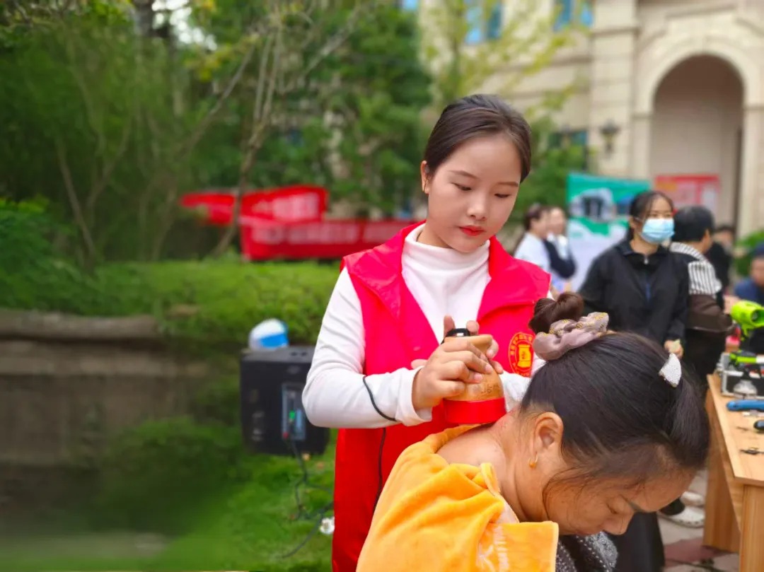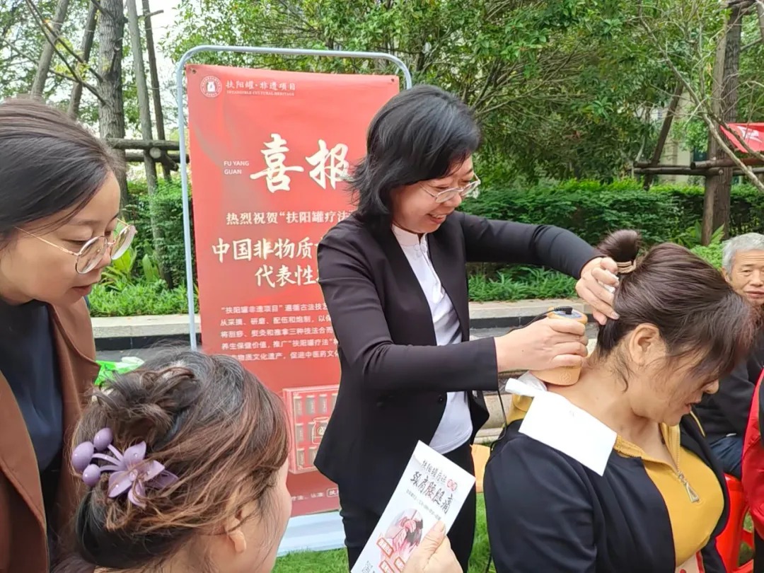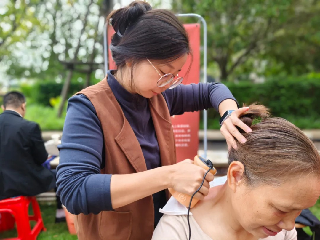 活动现场,一面印有公司党支部名称的旗帜格外醒目。在党支部的统筹下,志愿者们分为多个小组,各司其职,井然有序。“党员先锋岗” 的同志们冲锋在前,凭借娴熟的手法,运用公司核心产品“扶阳罐”为老人们进行调理,有效缓解了他们的腰腿酸痛与疲劳感。