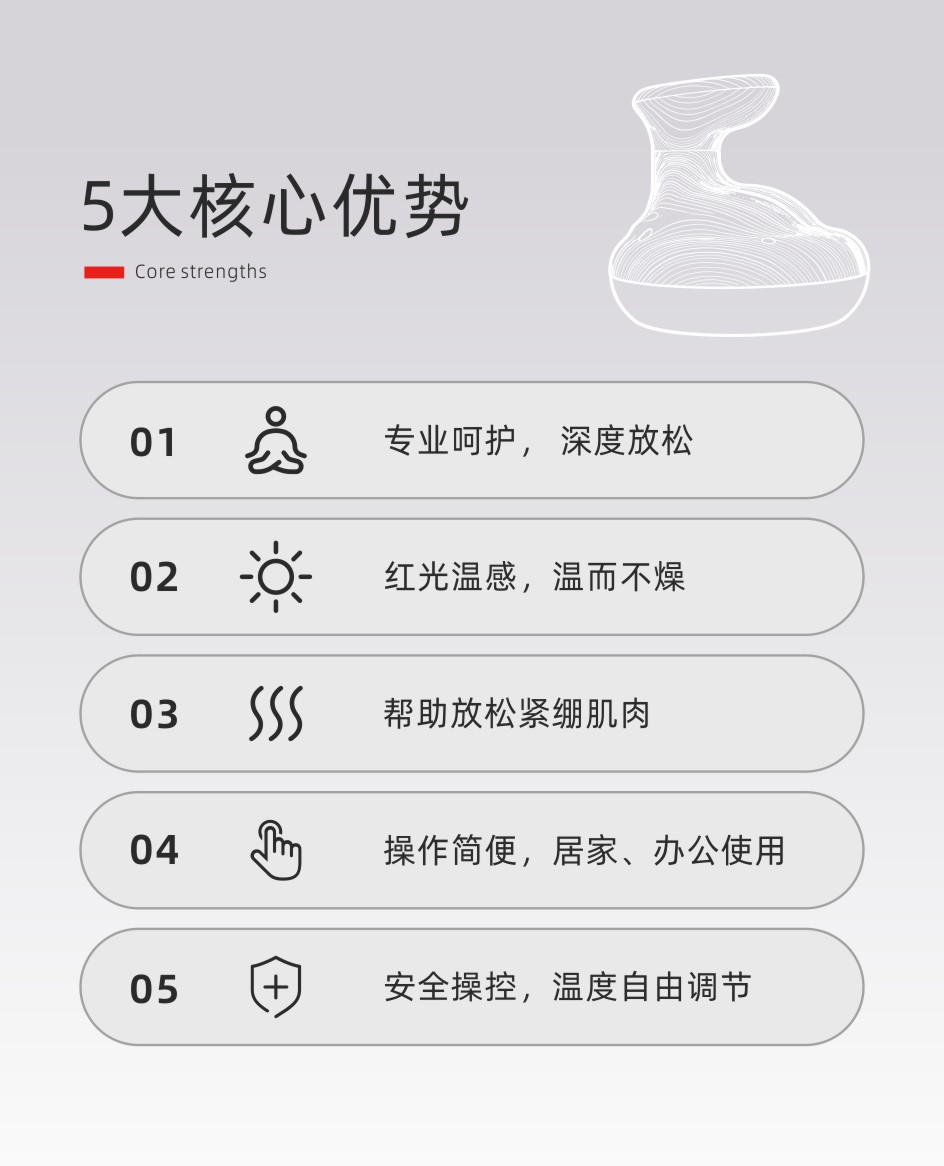 #握于手中,尽在掌握。开启一场沉浸式的红光SPA,无论是舒缓腹部还是推揉背部,居家养护变得如此随心、自由。